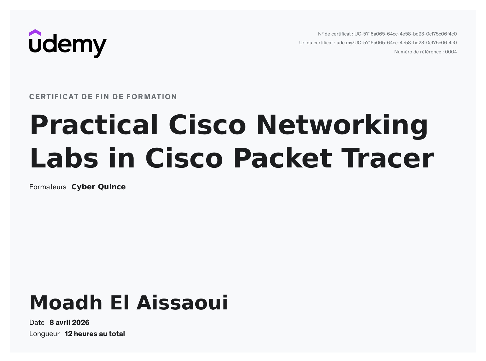 Formations suivies en autonomie pour renforcer mes compétences en informatique, réseaux, cybersécurité et langues.